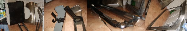 easy. Jul 5th 2009 I finished painting the door sills and then bolted on the replacement doors. Everything seems to be in line and working properly but I can't be sure yet as the door rubbers are not attached. This is because I will be putting more paint on the window surrounds and also because the rubbers are in a bit of a state and need a good clean and soaking in that ArmorAll rubber restorer. Jul 11th 2009 I decided to tackle the wheels next as they are one of the last major problems to sort out. One idea was to get new(er) wheels and possibly go up a size as the 12" originals are a little on the small size, however the point of this restoration is to recreate my first car and it had these type of Pardat alloys. Unfortunately they are in quite a state and need refurbishing. So I emailed a company and got a basic estimate of £230 which I guess is not too bad for five wheels, but it would certainly have cost more if I had gone ahead with it, as they would have charged for the added extra work required to fix the poor condition of the wheels. As well as that there is also the cost of five new tires to take into consideration. All in all I was looking at a bill of around £500 and this project is already well over budget (well it would be if I had actually ever set one) so it was time for some cost-cutting - and that means doing it myself as usual. Firstly I jacked up the spare car, balanced it on supports and took off it's wheels, then swapped them with the ones on my prime car, then a quick trip to a garage to get the tires removed. Then I began the stinky process of applying Nitro Mors paint stripper - boy does that stuff work fast, the paint almost leaps off the metal! After a good rub over with wire wool to remove the last of the paint/varnish and a wash down the wheels were taken indoors for the lengthy job off final cleaning and polishing - not as big a job as it could be as only the front facings have to be polished, the rest of the wheel will be painted Black, still it will take me a couple of weeks. Jul 25th 2009 While discussing my